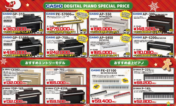ヤマハだけではなく、今回もカシオの商品を特別価格でご案内いたします。